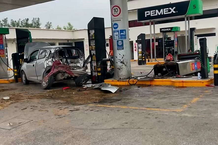 Veracruz, Ver. — Un aparatoso accidente se registró la mañana de este sábado en la gasolinera ubicada sobre la avenida JB Lobos, cuando el conductor de un vehículo color rojo chocó por alcance contra otra unidad que se encontraba cargando combustible.
