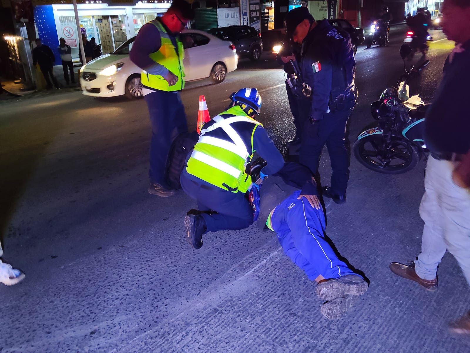 Minutos m谩s tarde arribaron param茅dicos de Protecci贸n Civil, quienes brindaron los primeros auxilios al lesionado y posteriormente lo trasladaron a un hospital para su valoraci贸n y atenci贸n m茅dica.