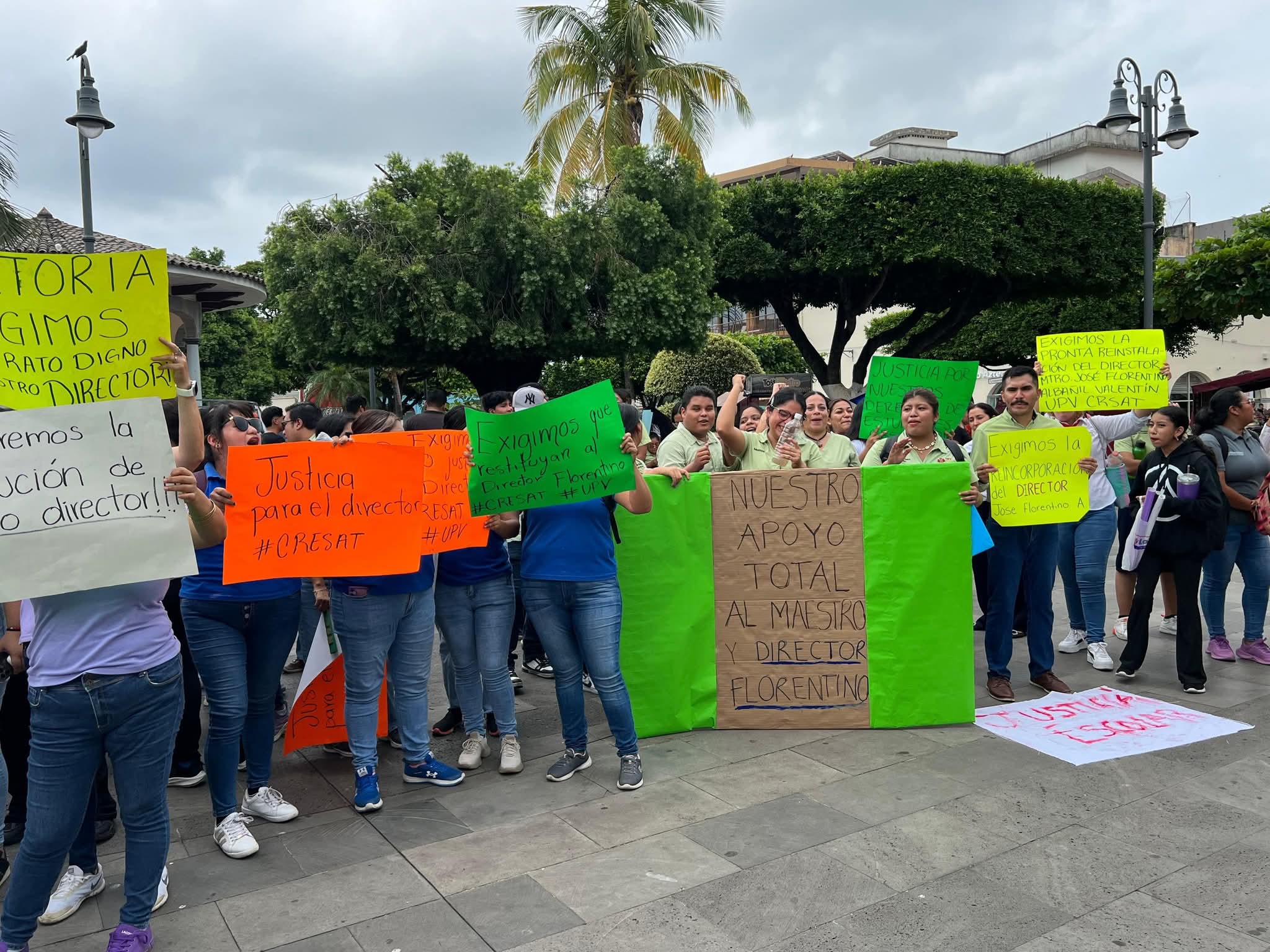 Los manifestantes acusaron que su remoción fue resultado de un “dedazo político” y no por razones académicas o administrativas, por lo que exigieron su pronta restitución. Asimismo, pidieron a la SEV regularizar el pago pendiente del maestro, pues afirman que no se trata de pedir más, sino de exigir lo justo en una institución pública.