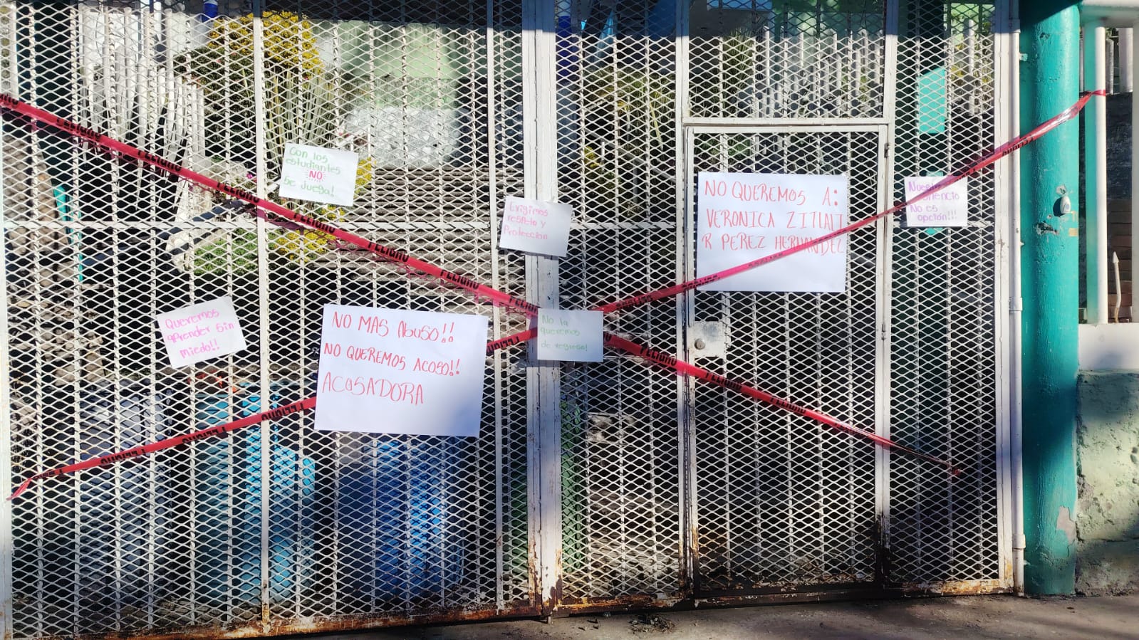 La toma del plantel ocurrió alrededor de las 7:40 horas, cuando el personal docente arribó y encontró las instalaciones cerradas por los estudiantes, quienes colocaron pancartas y manifestaron su rechazo al regreso de la profesora.