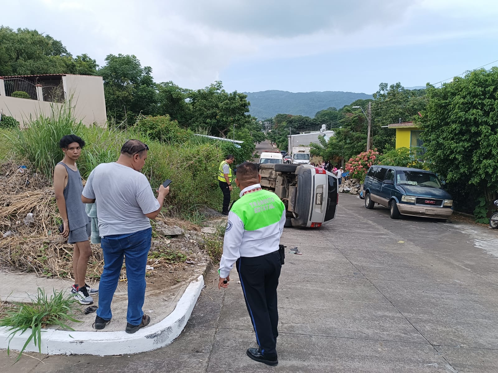 San Andrés Tuxtla, Ver. — La tarde del viernes 18 de Julio, alrededor de las 15 horas, se registró la volcadura de un automóvil particular en la calle Almendros, ubicada en la colonia Francisco López Lara de esta ciudad.