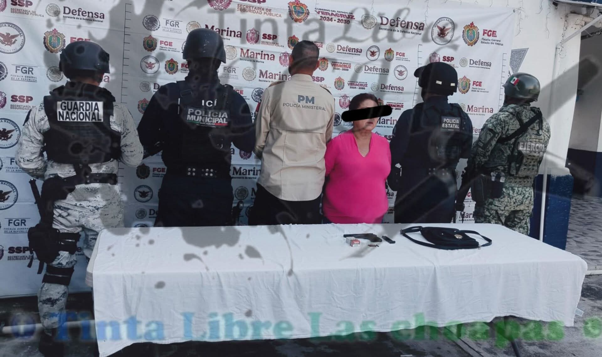 Un operativo de seguridad realizado en la comunidad de Río Playas, en el municipio de Las Choapas, derivó en el aseguramiento de una mujer a quien se le localizó un arma de fuego en el interior de su domicilio.