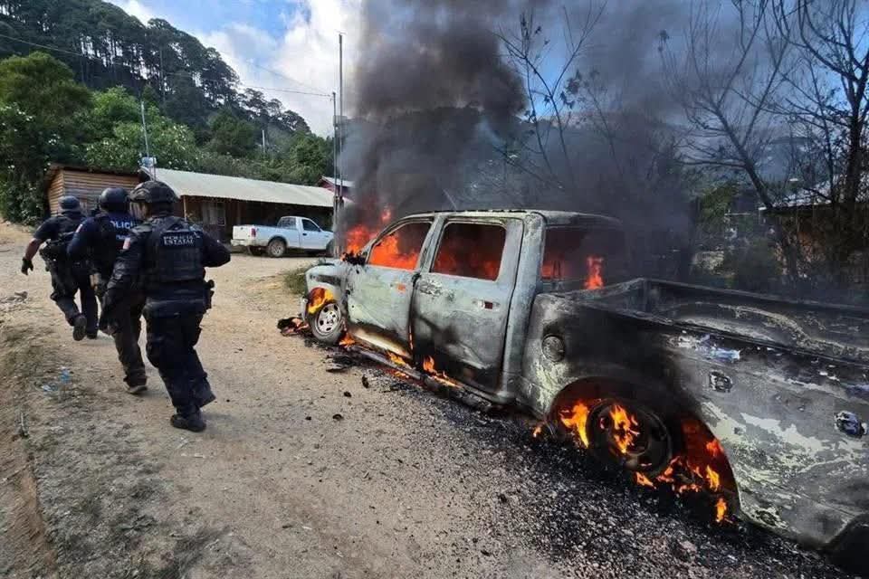 Como consecuencia del ataque, varios vehículos quedaron envueltos en llamas, además de reportarse daños materiales considerables en viviendas y caminos de la zona. Hasta el momento no se ha confirmado si hubo personas lesionadas o fallecidas.