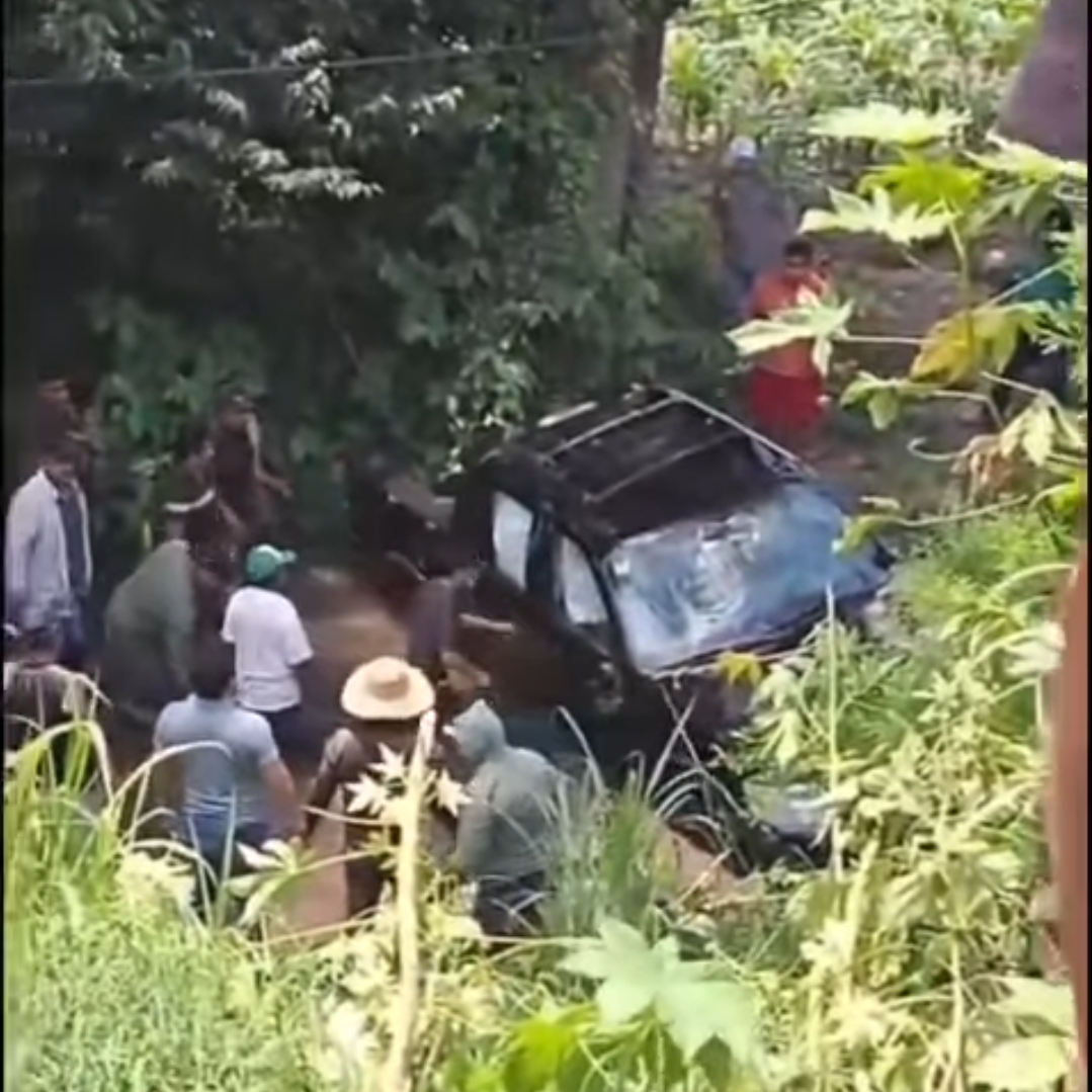 Elementos voluntarios y pobladores de la zona acudieron al lugar para intentar retirar la camioneta del afluente, sin que hasta el momento se conozca la identidad de los ocupantes, ni si hubo personas lesionadas.