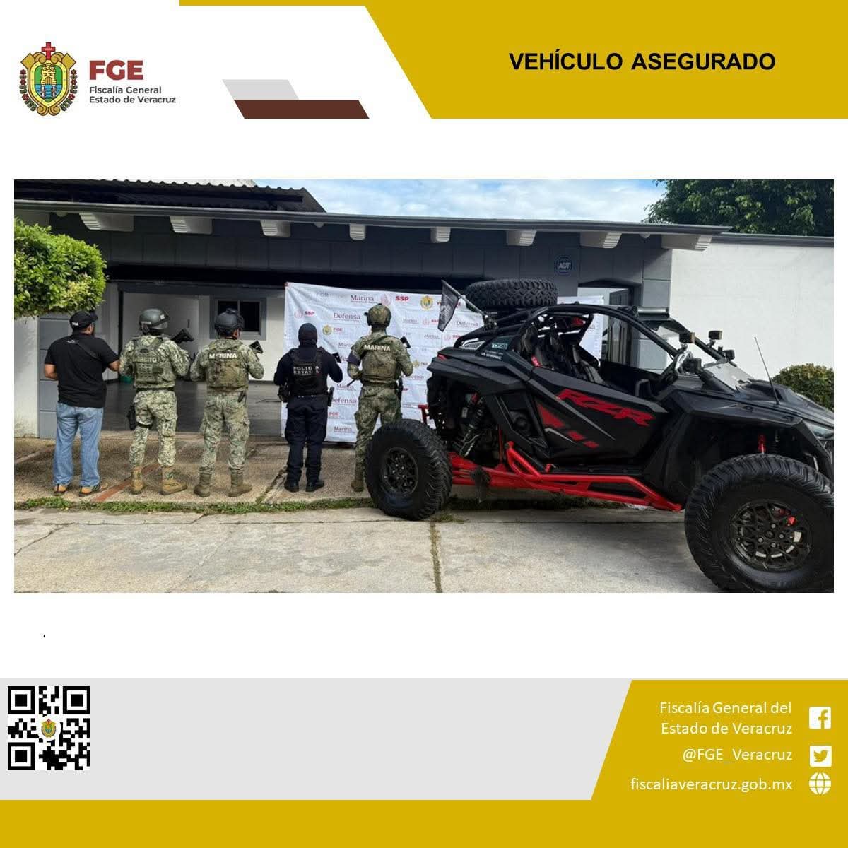 En el inmueble inspeccionado se localizó un vehículo tipo RZR —popular entre aficionados al off-road— el cual fue asegurado como parte de las investigaciones en curso.