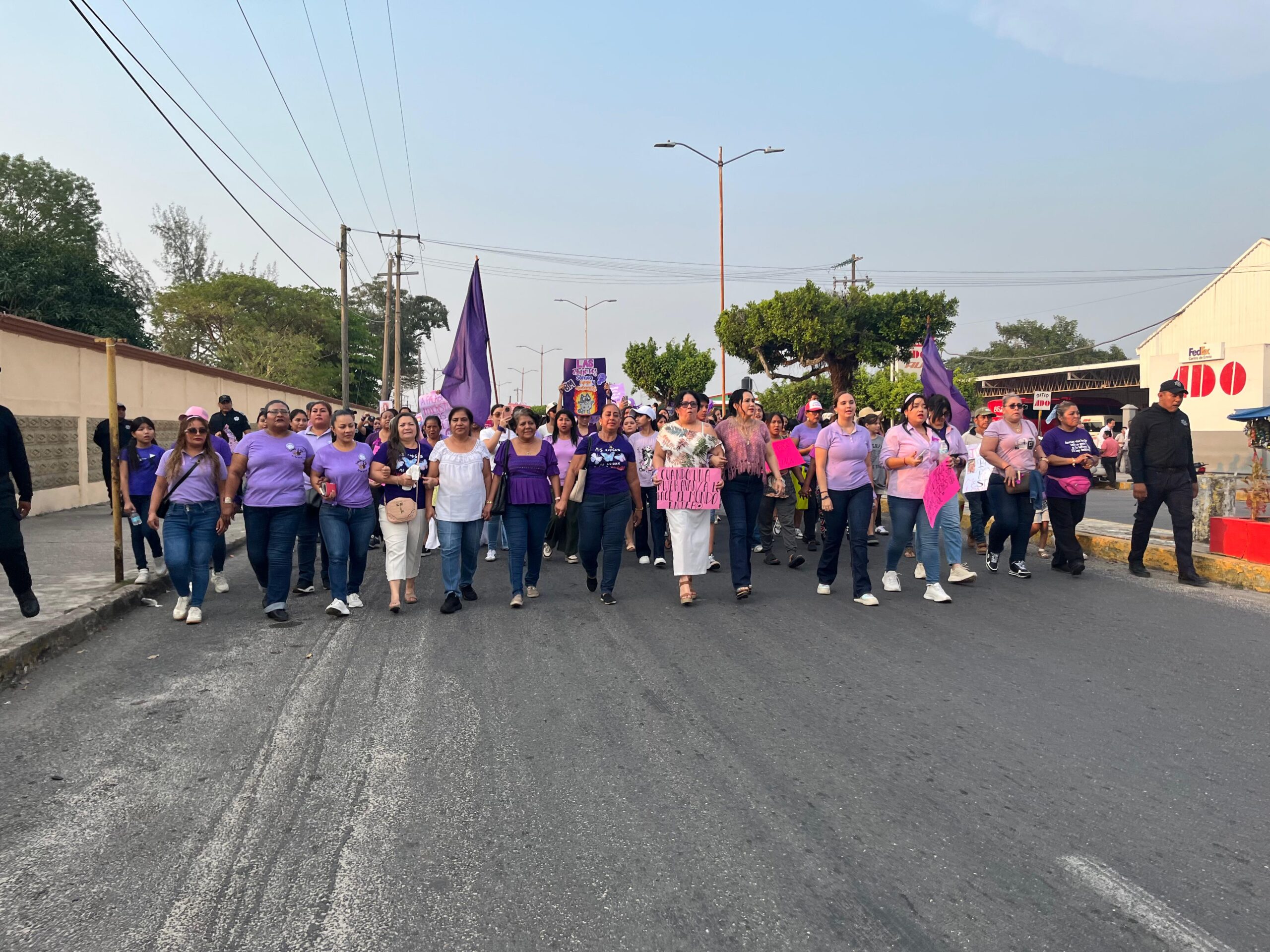 La movilización inició en la Unidad Deportiva Luis Donaldo Colosio, desde donde las participantes caminaron por diversas calles de la ciudad hasta llegar al Parque Benito Juárez García.