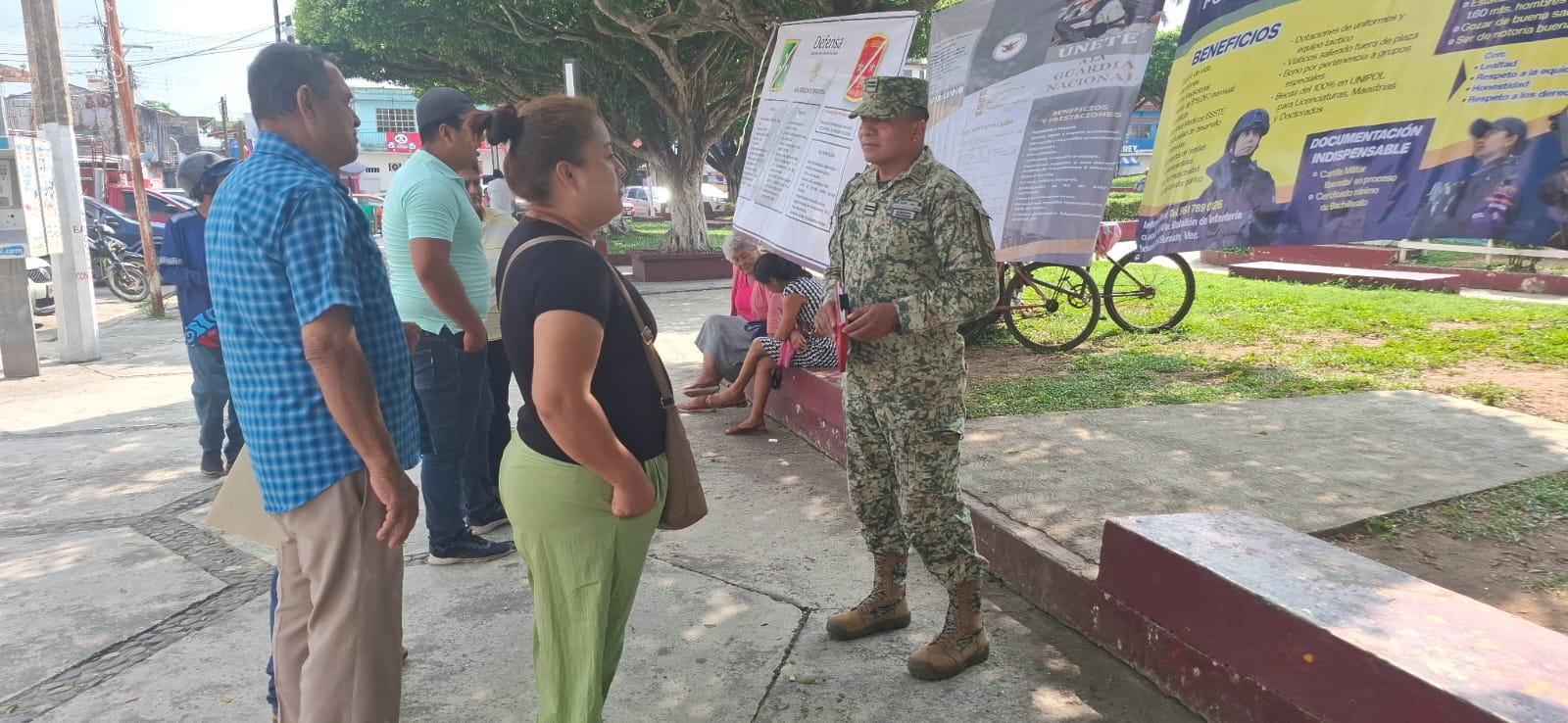 Las Choapas, Ver.— Diversas corporaciones de seguridad instalaron este lunes módulos informativos y de reclutamiento en el parque Benito Juárez García, con el objetivo de invitar a la ciudadanía a integrarse a sus filas y ofrecer alternativas de empleo formal con prestaciones atractivas.