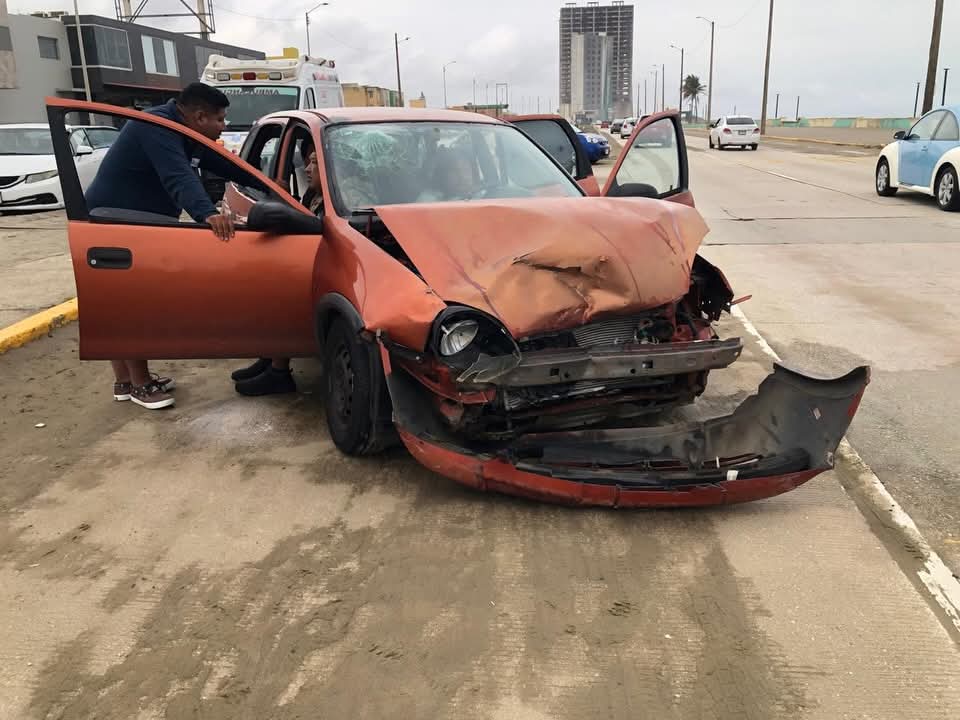 El percance ocurrió cuando un automóvil Honda Civic, color blanco, que circulaba de sur a norte sobre Ambrosio Solórzano, intentó incorporarse al Malecón sin respetar la preferencia de paso, impactando de manera directa a un Chevrolet tipo Chevy, que avanzaba de poniente a oriente con dirección al centro de la ciudad.