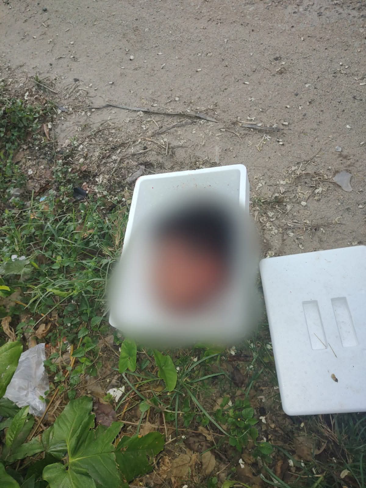 De acuerdo con el reporte, fue una denuncia anónima que alertó a las autoridades tras observar una nevera blanca con logotipos de OXXO abandonada en un basurero, antes de llegar a la Palapa Sección 48, solicitando la intervención policial.