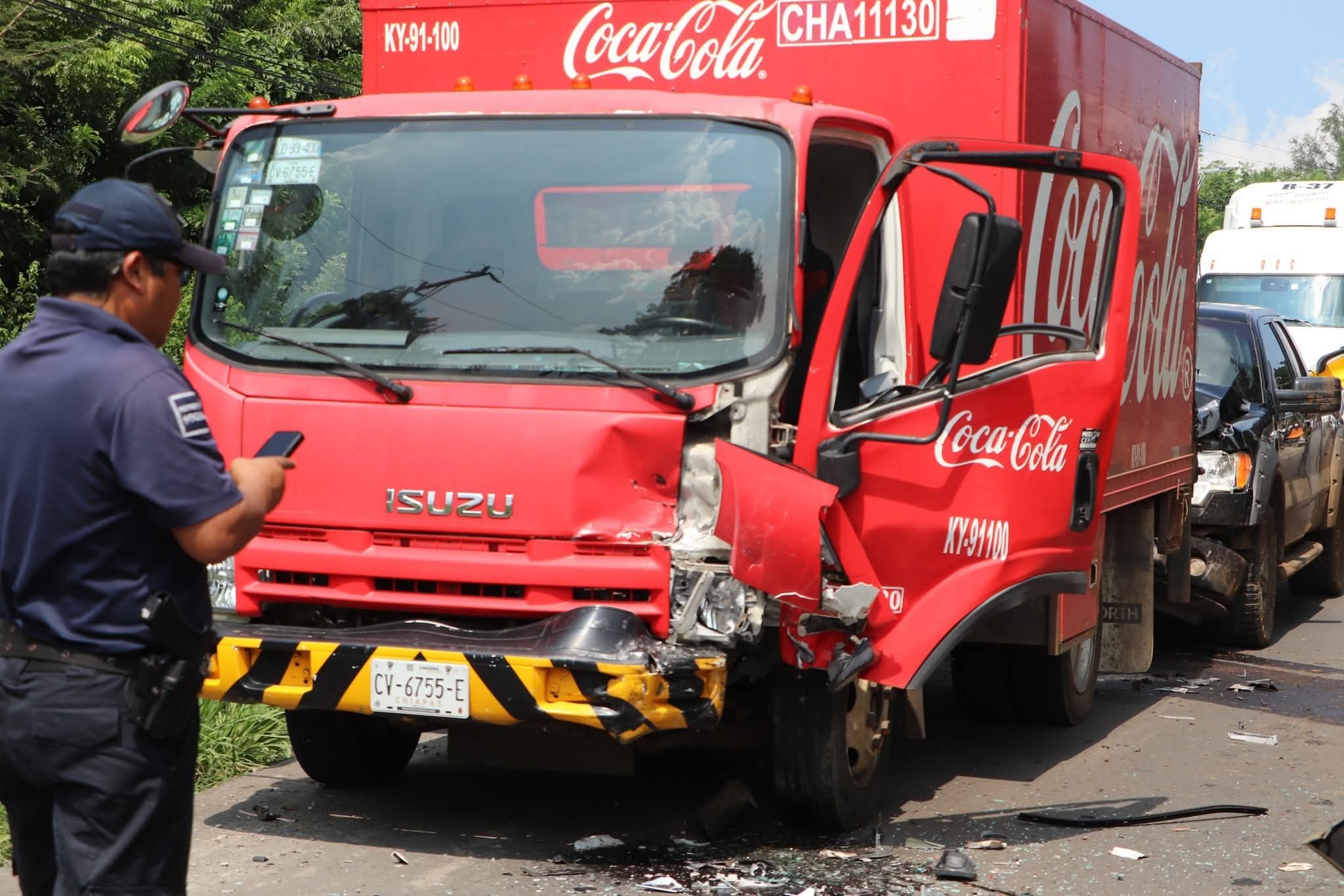 Elementos de la Policía Estatal acudieron al lugar para tomar conocimiento de los hechos, coordinar el tráfico vehicular y brindar apoyo a los involucrados. Uno de los ocupantes del camión refresquero presentó lesiones leves, mientras que los daños materiales fueron de consideración en las tres unidades.