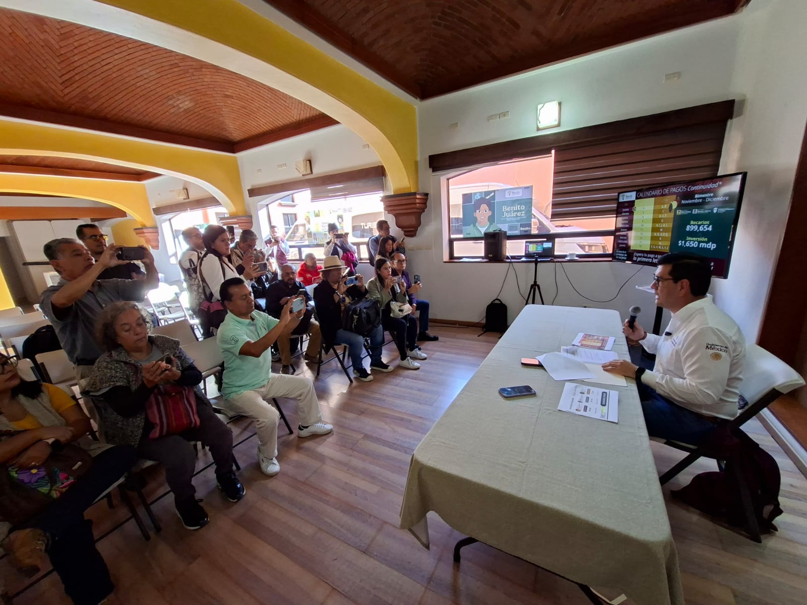 El coordinador de becas para el bienestar en Veracruz Carlos Alberto Villa Jiménez dio a conocer esta mañana, que a partir de este día 4 de diciembre y de acuerdo al calendario de pagos comenzó la dispersión de recursos a las y los estudiantes incorporados al programa nacional de becas para el bienestar que otorga el gobierno de México en Veracruz, este último bimestre del año se beneficia un aproximado de 900 mil becarios de los niveles de educativos que son: educación básica, media y superior con una inversión cercana a los mil 650 millones de pesos.