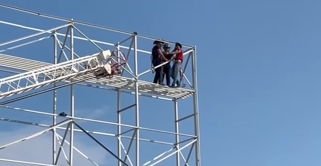 Minutos después llegaron bomberos municipales, cuyo comandante, Alfonso García Cardona, ascendió hasta la parte alta de la estructura para dialogar con Daniel “N” y brindarle apoyo, intentando que descendiera de manera segura.