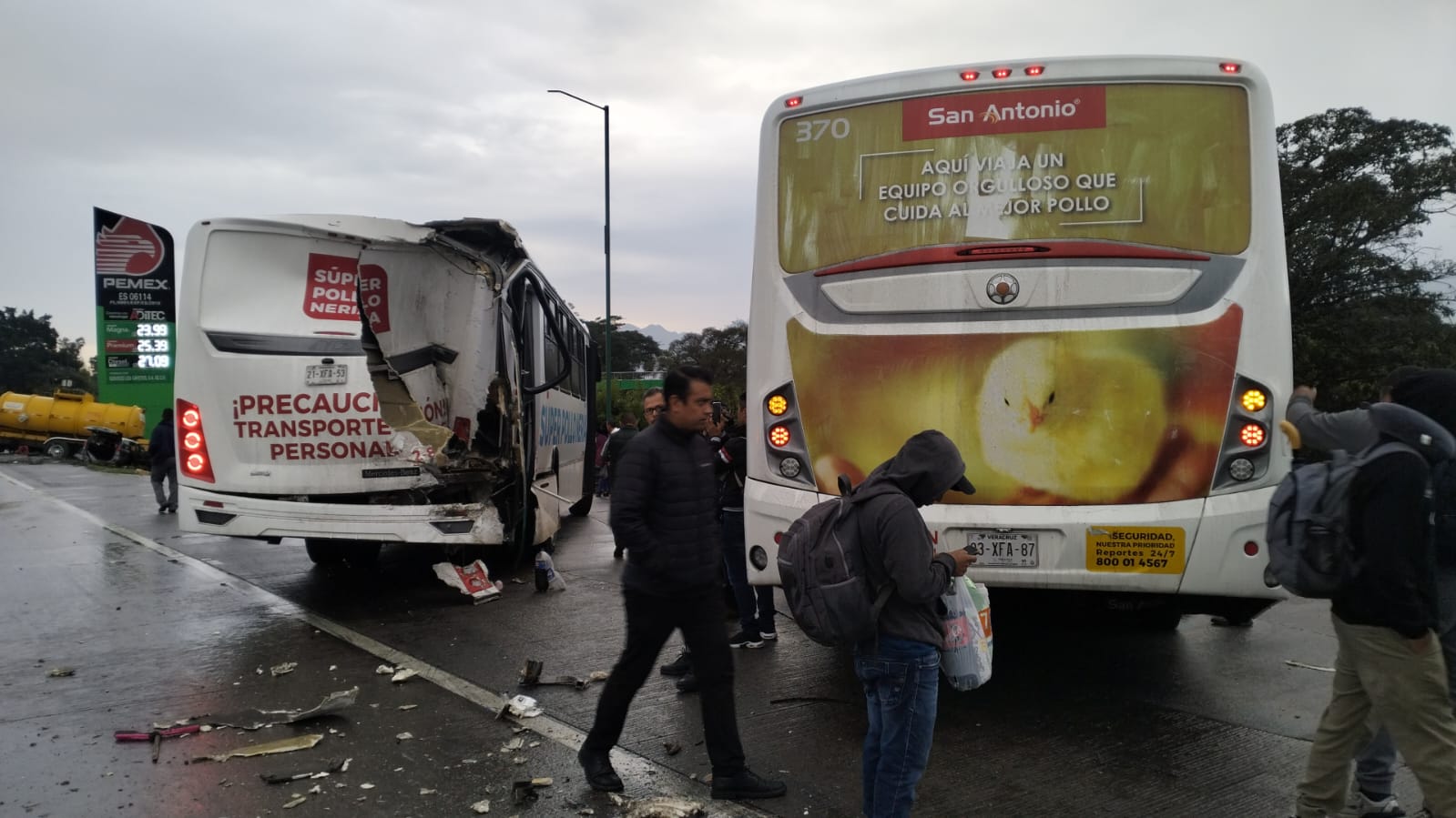 De acuerdo con los primeros reportes, en el percance se vieron involucradas al menos seis unidades, entre ellas un autobús de la empresa San Antonio que transportaba trabajadores, el cual estuvo a punto de salir del camino y caer a un terreno de desnivel; un autobús de la empresa Pollos Neria; una pipa que colisionó contra otro vehículo; un taxi de la localidad de Dortinm; una camioneta color azul, además de otra unidad particular.