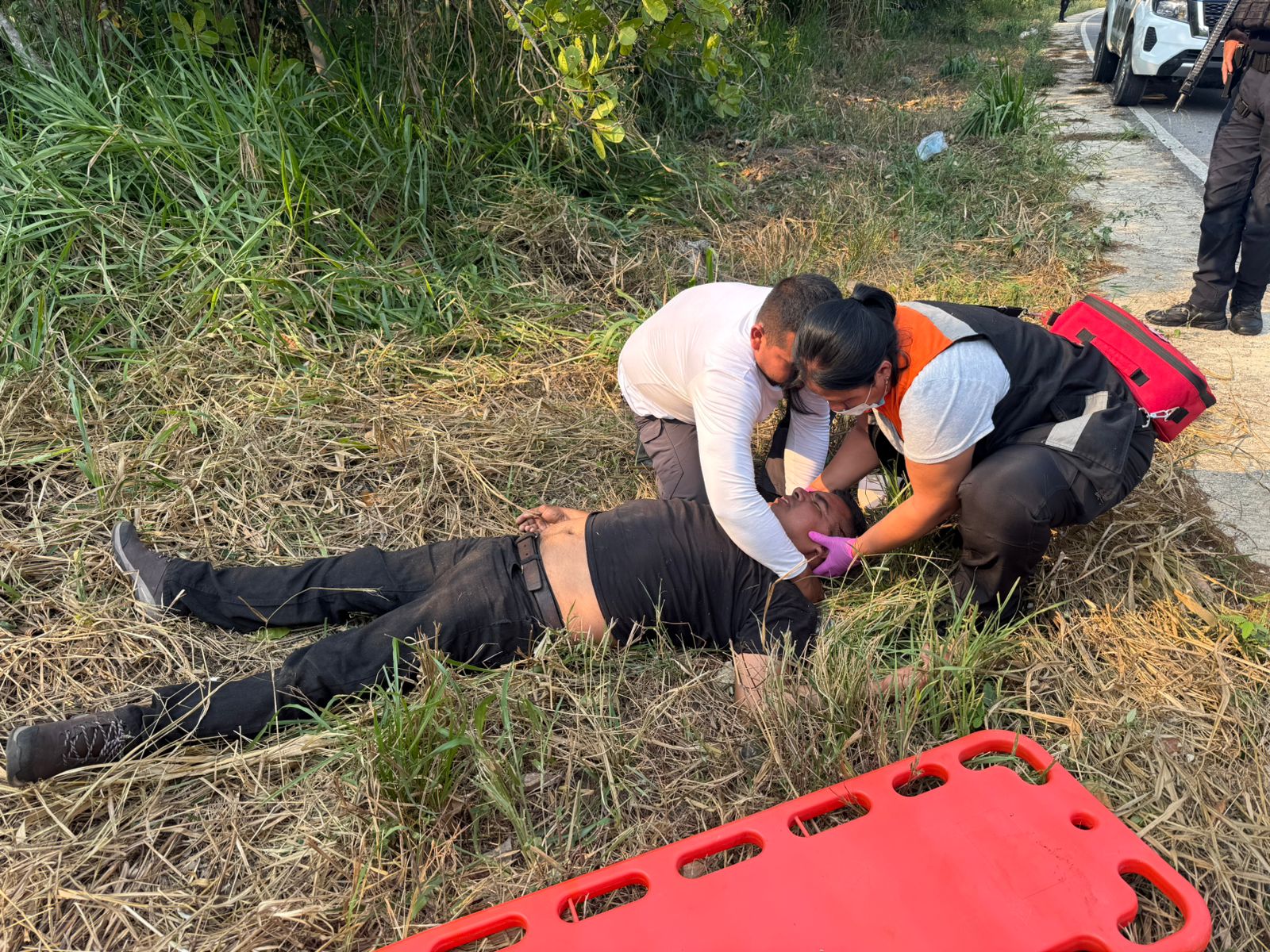 El lesionado fue identificado como Salomón Reyes González, de 38 años de edad, quien fue atendido en el lugar por paramédicos de Protección Civil tras salirse de la carpeta de rodamiento.