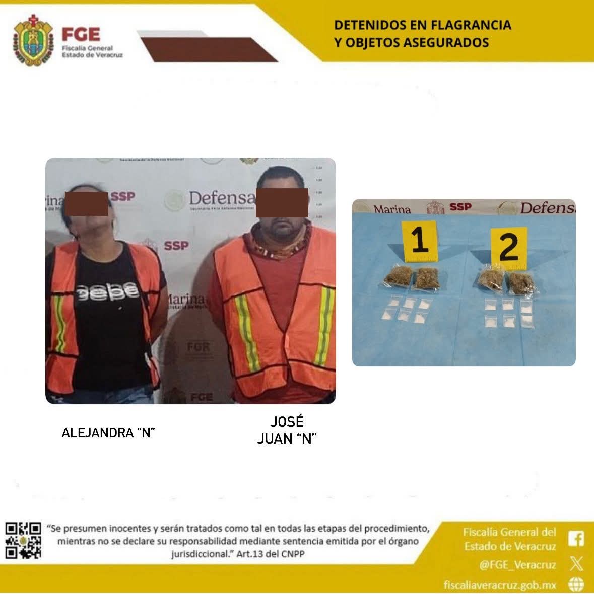 Durante el desarrollo de la diligencia judicial, las autoridades reportaron la detención en flagrancia de Alejandra “N” y José Juan “N”, quienes presuntamente se encontraban vinculados con actividades ilícitas investigadas por las autoridades ministeriales.