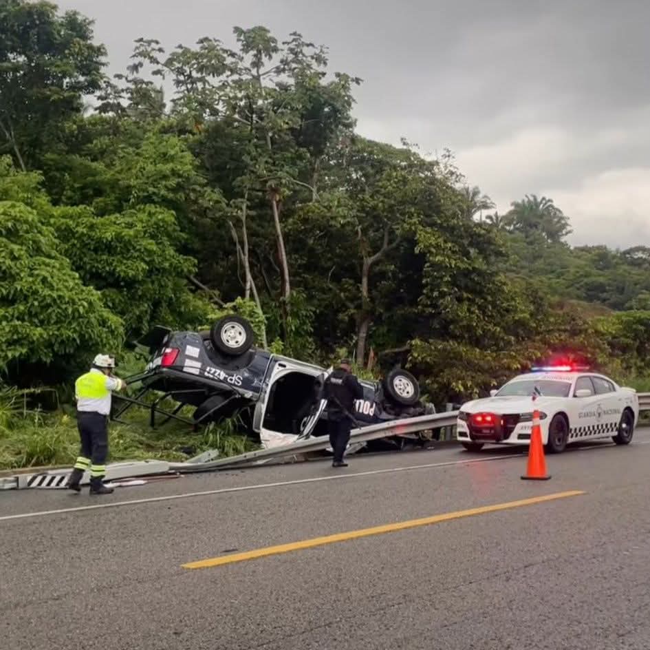 De acuerdo con los primeros reportes, la unidad oficial se dirigía hacia la Mesa Regional de Seguridad cuando, presuntamente a causa de las lluvias y el mal estado de la carpeta asfáltica, el conductor perdió el control y terminó fuera de la cinta de rodamiento, volcándose en una de las cunetas.