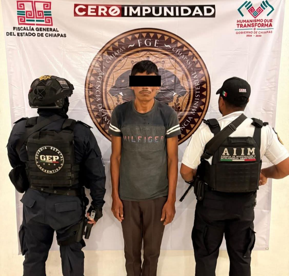 La Fiscalía General del Estado y la Secretaría de Seguridad del Pueblo ejecutaron un mandamiento judicial en contra de Azael “N”, alias “El Nato”, como presunto responsable del delito de pederastia, por hechos ocurridos en Ciudad Rural Nuevo Juan de Grijalva del municipio de Ostuacán el 21 de febrero de 2026.