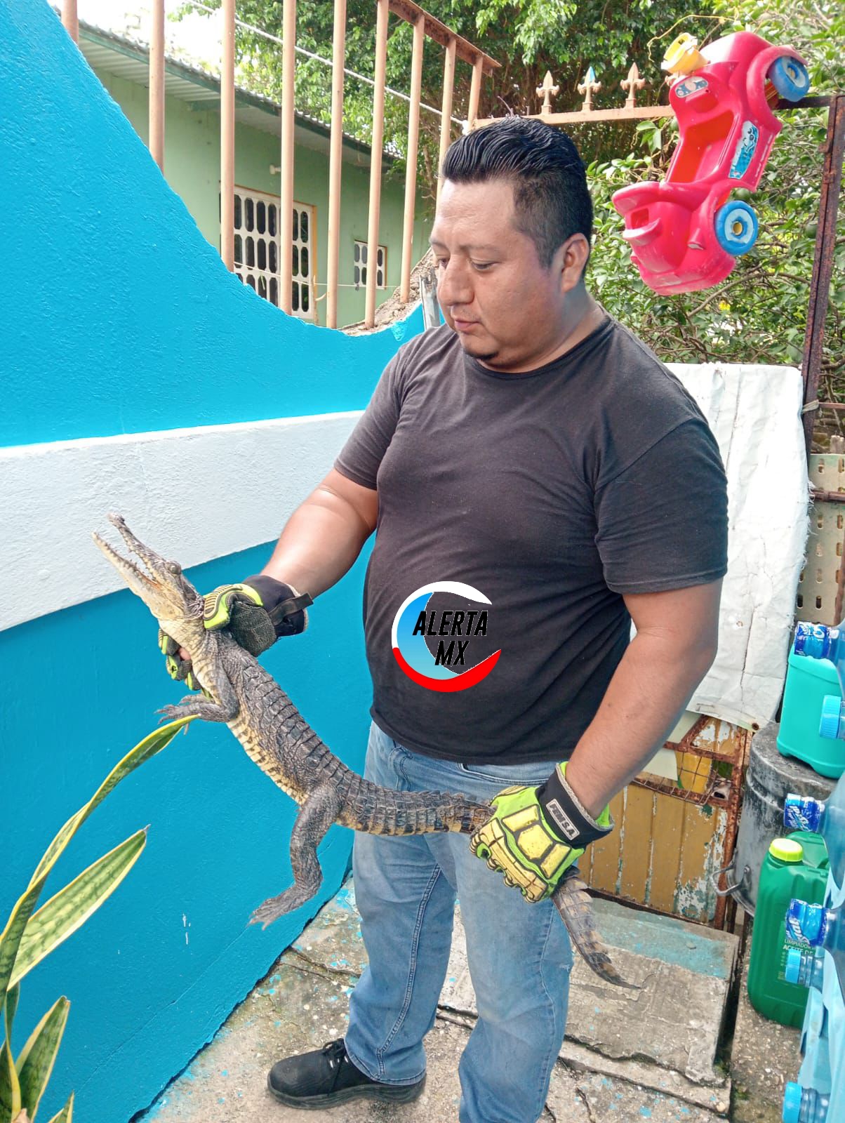 Elementos de Protección Civil y Bomberos de Minatitlán realizaron la captura de un lagarto que fue localizado dentro de un domicilio particular, ubicado en la calle 4 de la colonia Praderas del Jagüey.