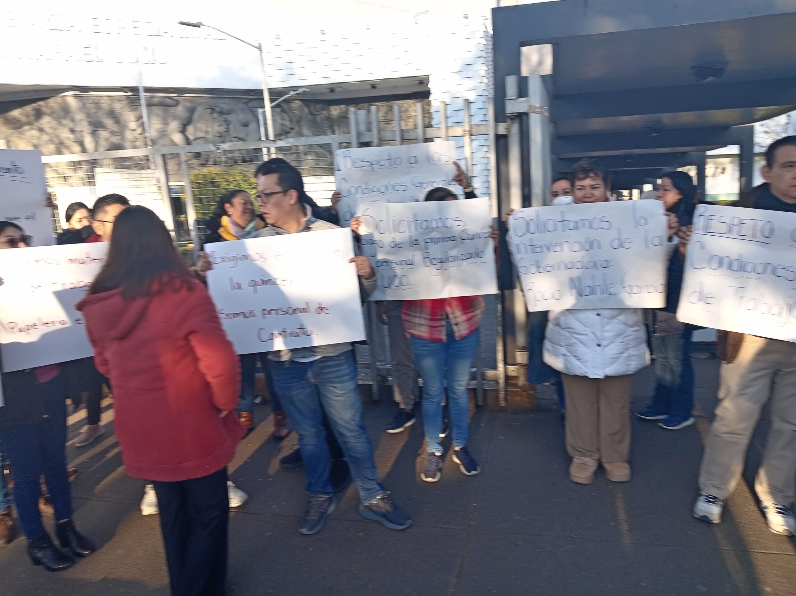 Decenas de trabajadores del centro de alta especialidad, Dr. Rafael Lucio, ubicado en la avenida Adolfo Ruiz Cortines de esta ciudad de Xalapa, se encuentran manifestándose en la entrada principal de este nosecomio,