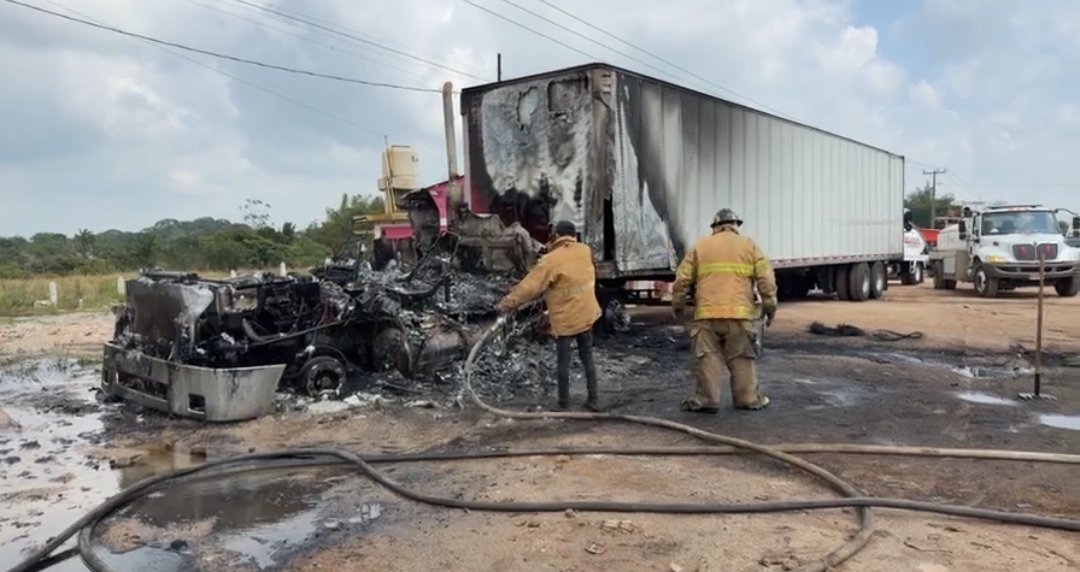 Asimismo, minutos después del mediodía, otra unidad pesada fue consumida por el fuego en la localidad de Los Manantiales, municipio de Agua Dulce, en los límites con Tabasco. En este punto, elementos de Protección Civil, bomberos y fuerzas policiacas trabajaron para sofocar el incendio y asegurar el área.