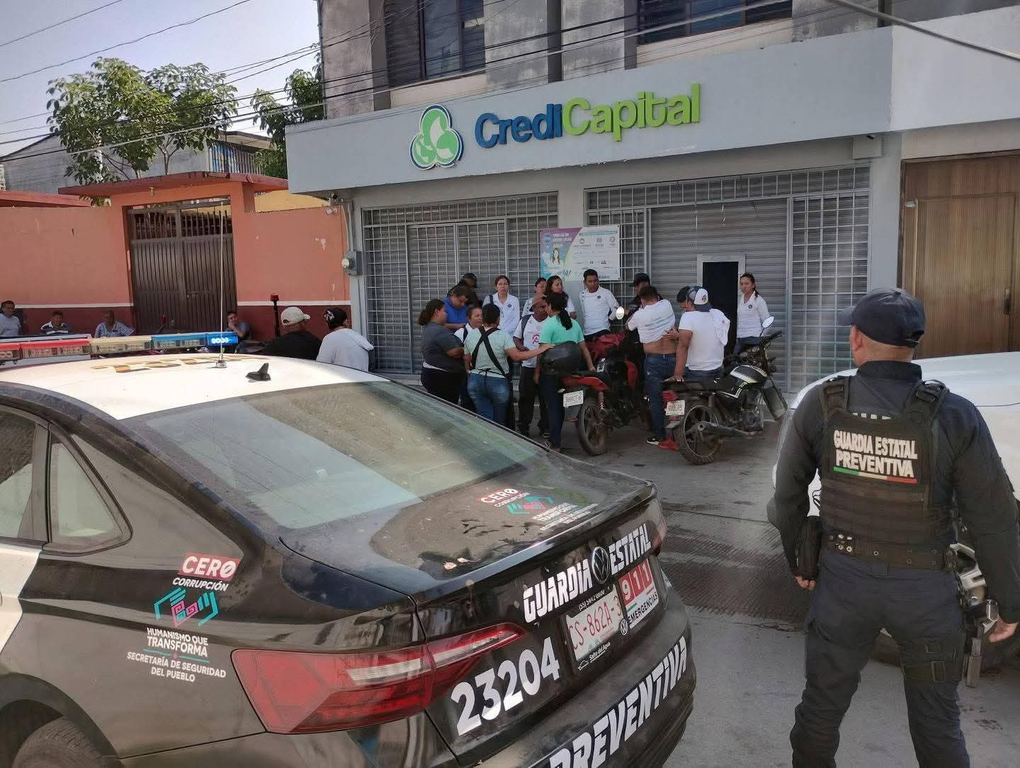 Tonalá, Chiapas.— La mañana de este miércoles, alrededor de las 09:00 horas, dos sujetos armados perpetraron un violento asalto en la financiera Credi Capital, ubicada sobre la calle 20 de Marzo, entre las avenidas Juárez y Allende, en el Barrio Nicatán, a escasos metros del edificio del Ministerio Público Manuel Larrainzar.