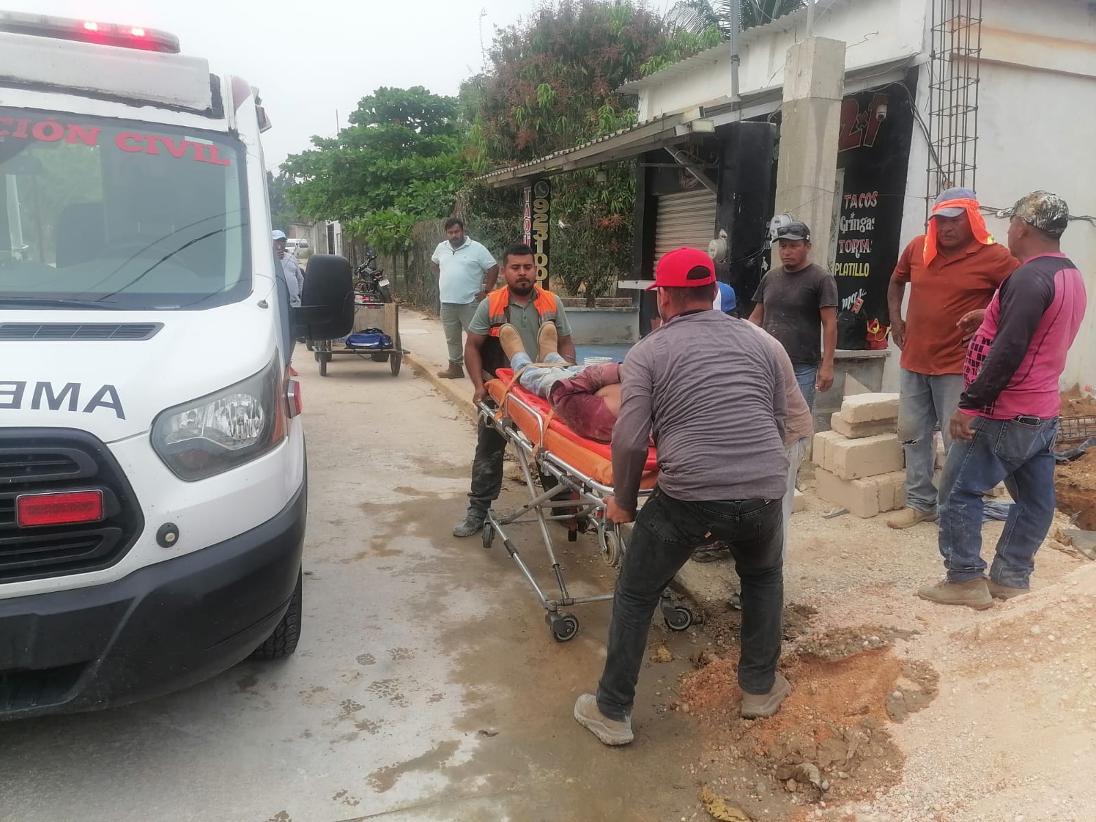 De acuerdo con los primeros reportes, el trabajador cargaba un bulto de cemento cuando presuntamente tropezó, lo que provocó que cayera de frente contra el suelo. Tras el impacto, quedó inconsciente por algunos instantes, lo que generó preocupación entre las personas que se encontraban en el lugar.