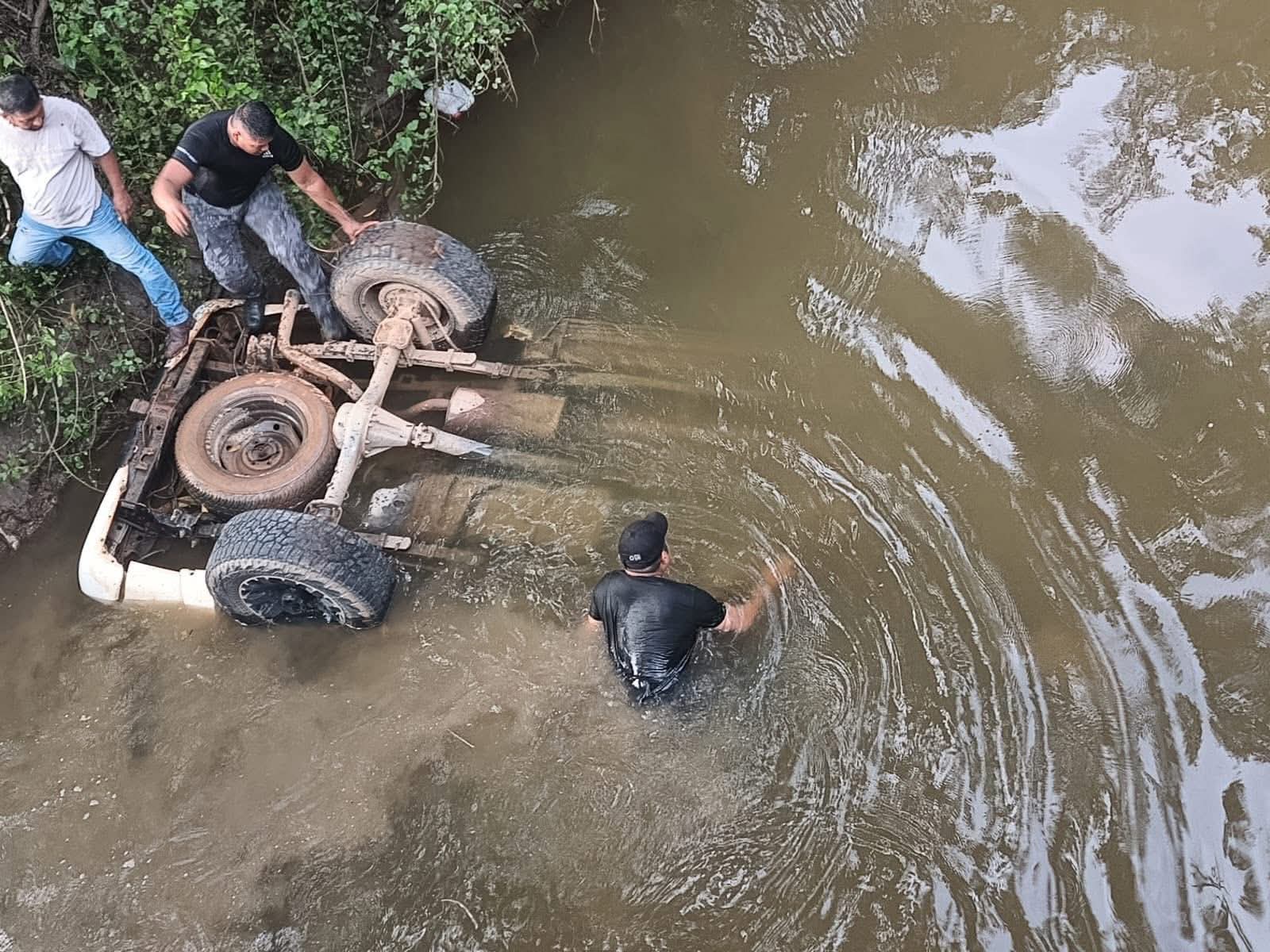 La víctima fue identificada como Serapio C. S., originario de El Nigromante, quien viajaba en una camioneta blanca. La unidad terminó volcada con las llantas hacia arriba y sumergida en el agua, lo que impidió que el conductor pudiera salir con vida.
