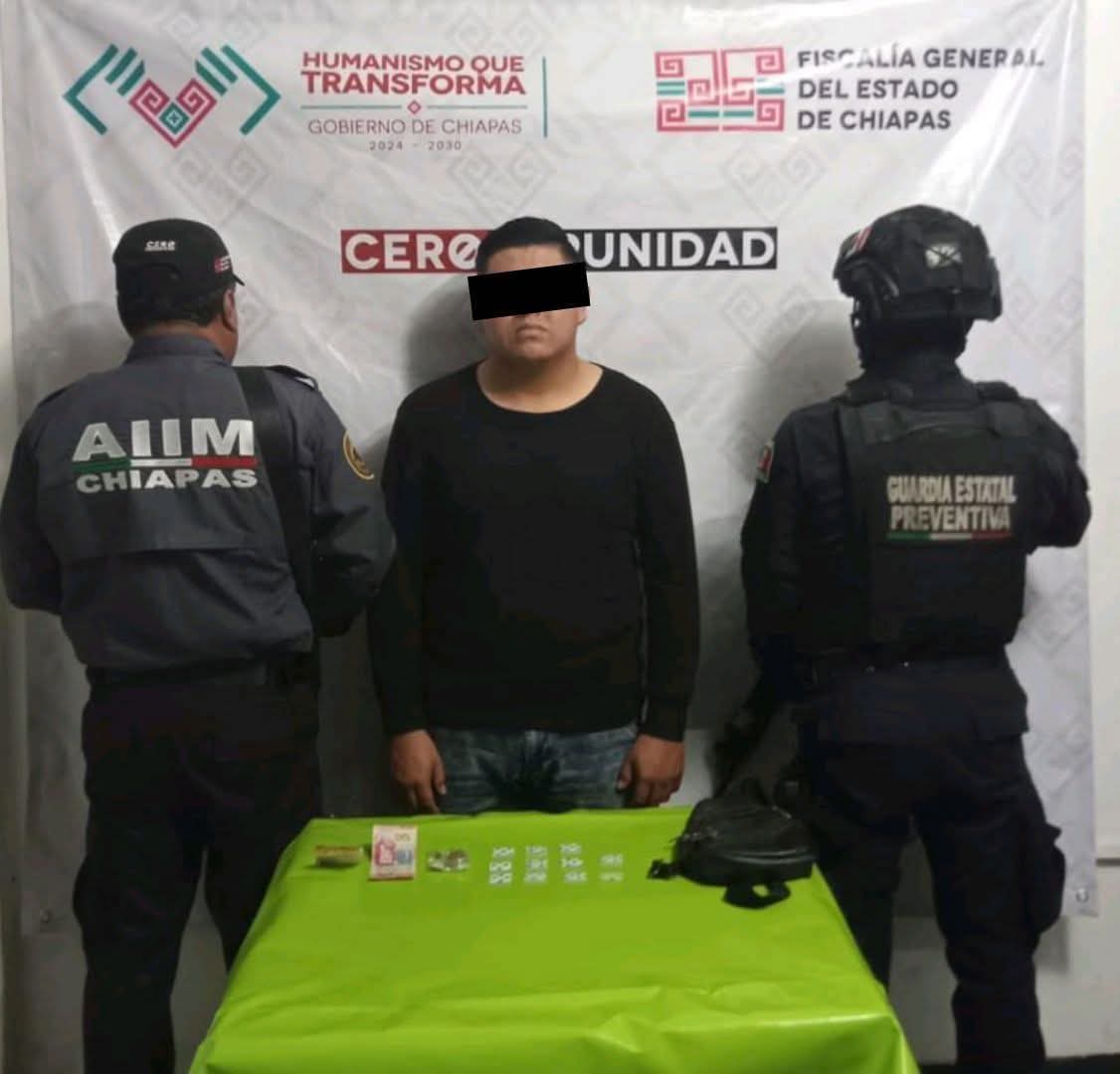 La Fiscalía General del Estado obtuvo la vinculación a proceso en contra de José “N”, como presunto responsable del delito de contra la salud, en su modalidad de narcomenudeo posesión de cristal y marihuana, cometido en agravio de la sociedad, por hechos ocurridos el 6 de diciembre de 2025 en el barrio Cruz Blanca del municipio de Ocozocoautla.