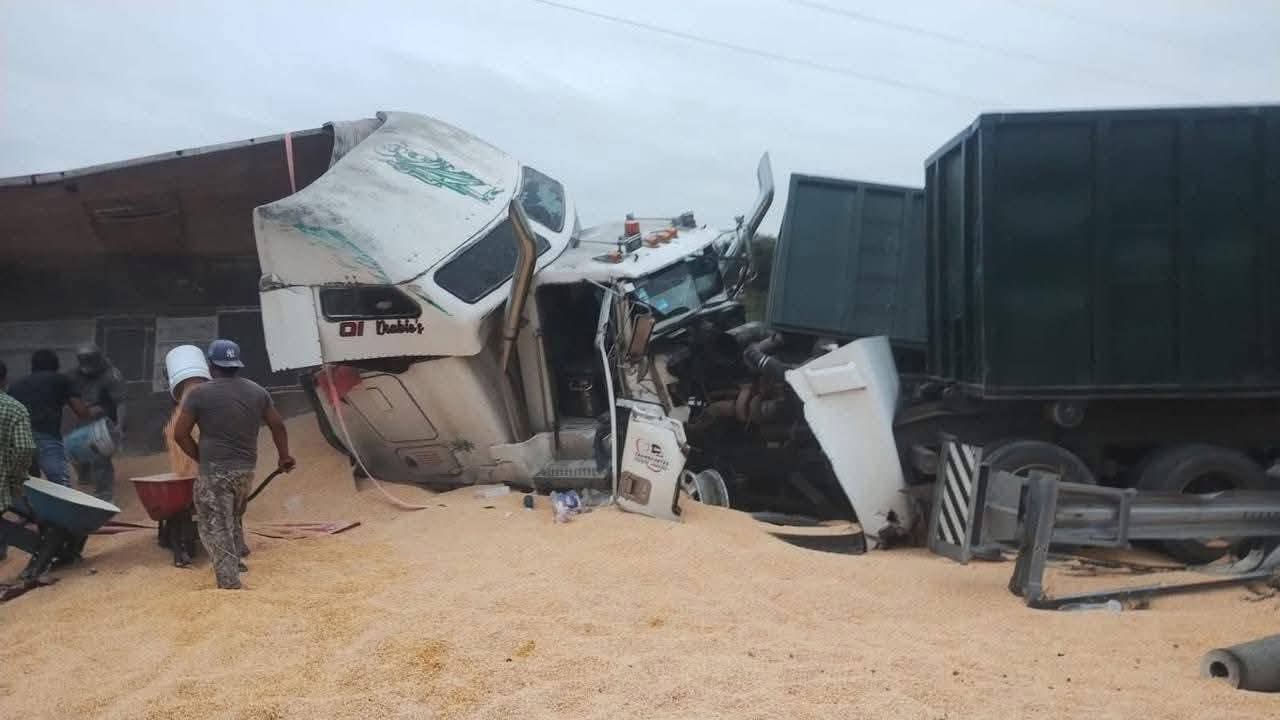 La mañana de este martes se registró la volcadura de un tráiler de doble remolque cargado con granos sobre la autopista Córdoba–Veracruz, lo que provocó afectaciones a la circulación y un escenario de riesgo en la zona.