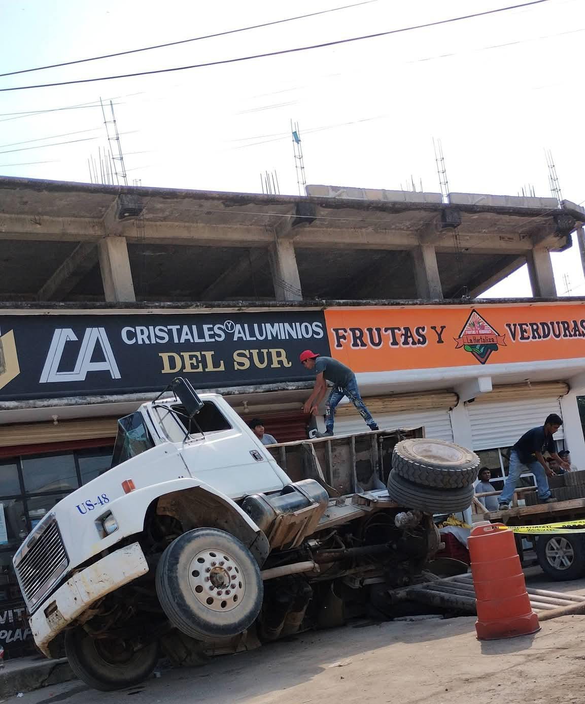 Las Choapas, Veracruz.— La mañana de este día se registró la volcadura de un camión de volteo en la calle Héroes de la Independencia, a la entrada de la colonia Ignacio Zaragoza, en el sector conocido como “El Perrero”, hecho que provocó alarma entre habitantes de la zona y conductores que transitaban por el lugar.